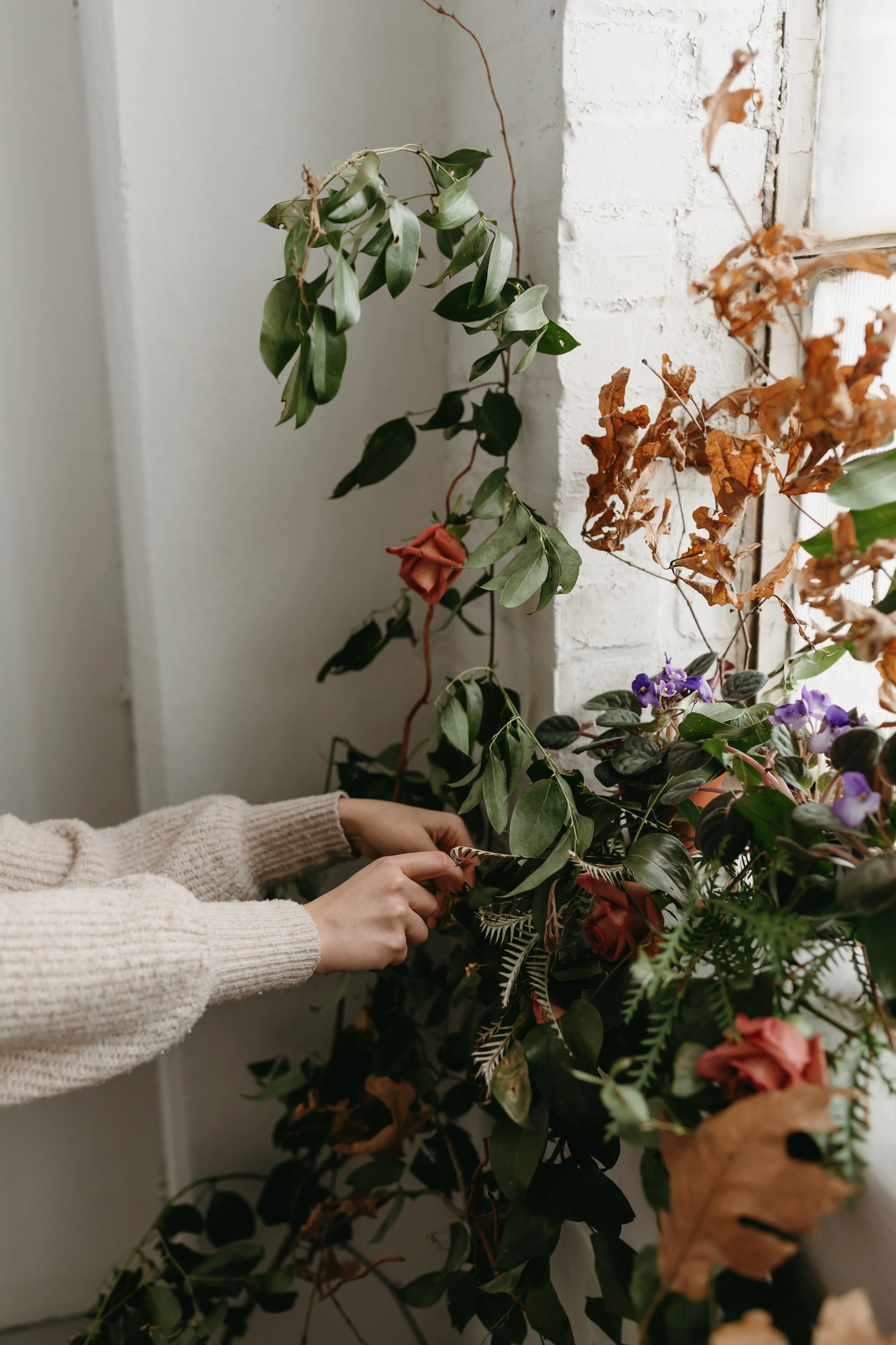 This past February The Art of Violets graced my then new studio with her talents and brought us the woodsy floral instillation of my dreams. Here are a couple of my favorite photos we created.
