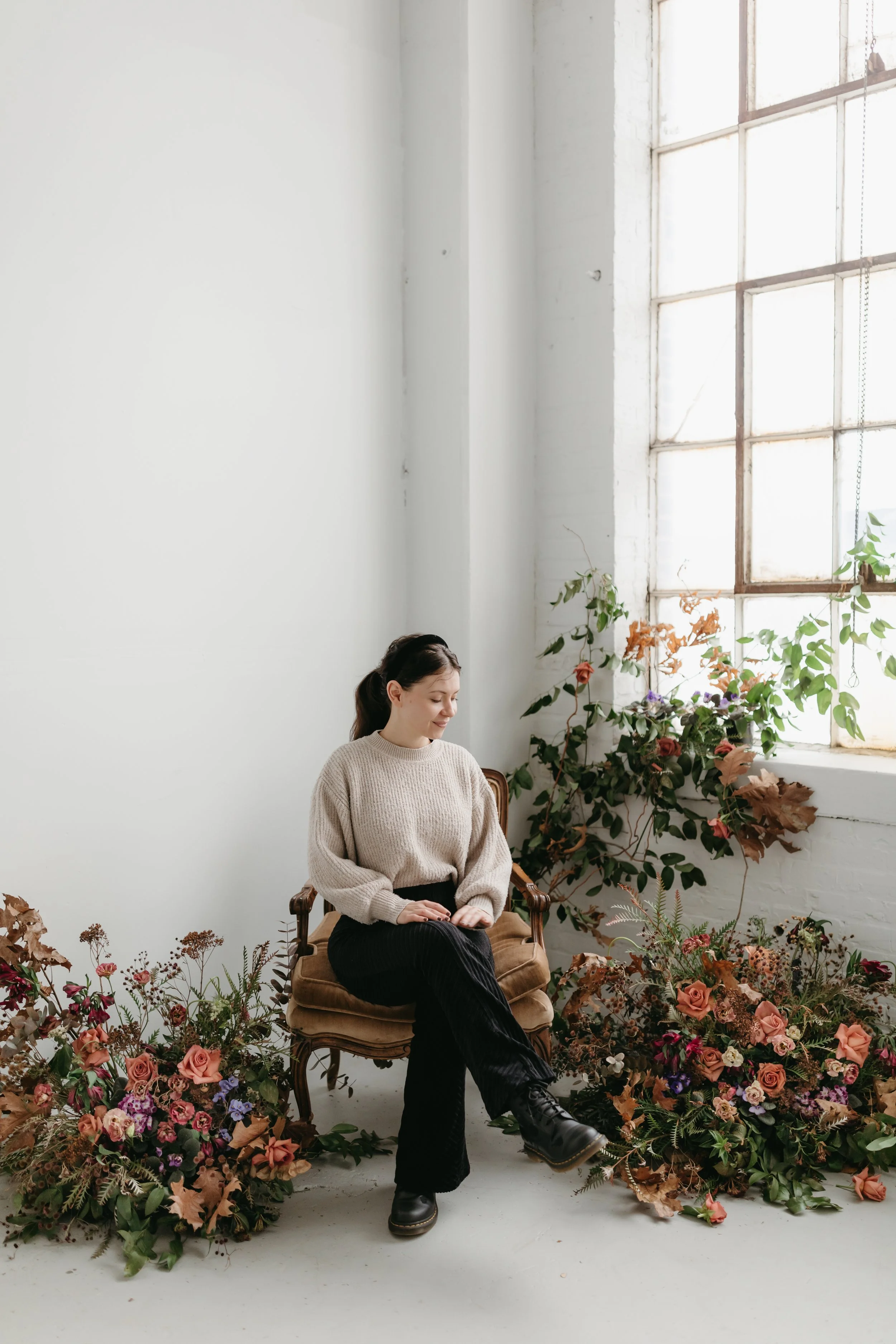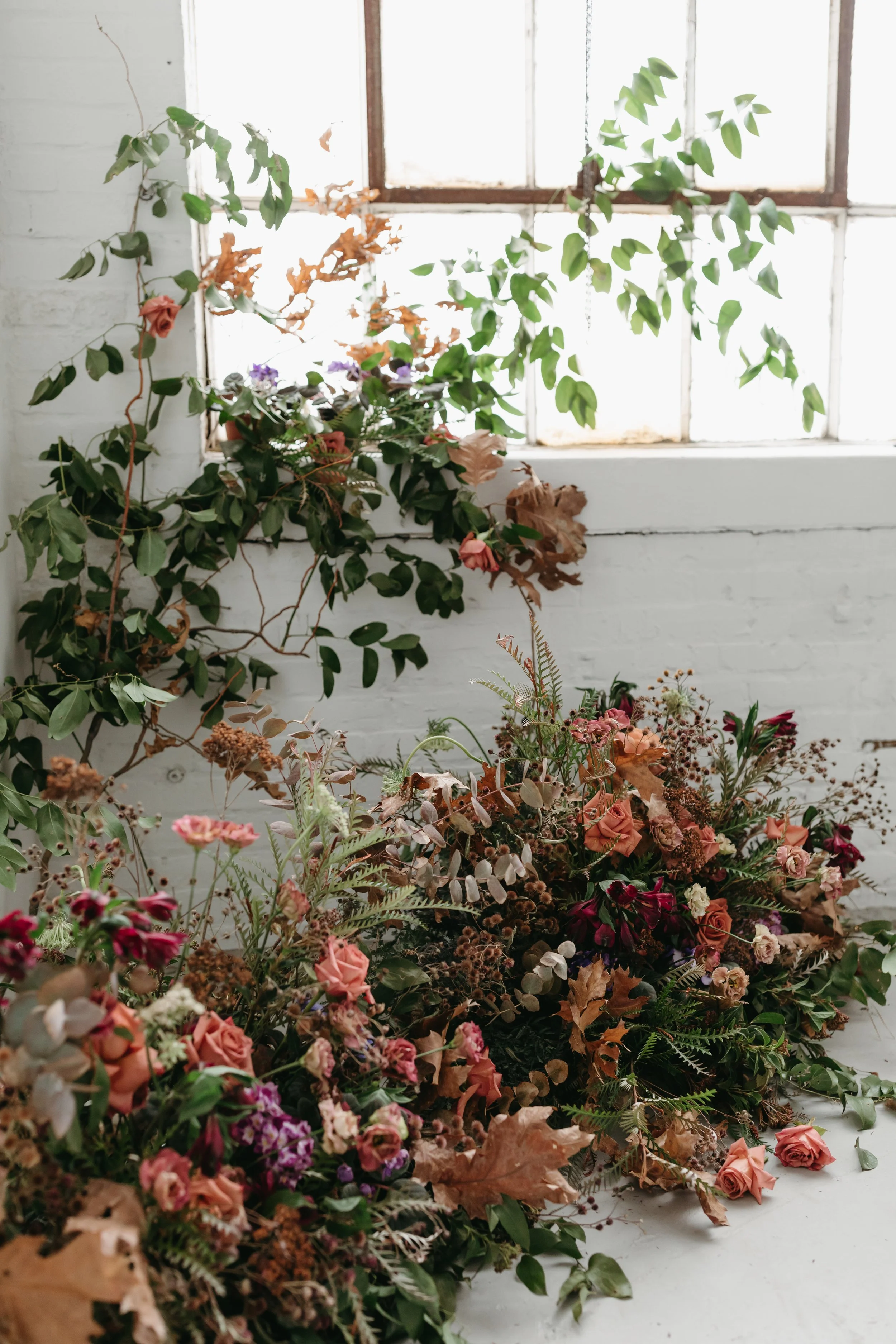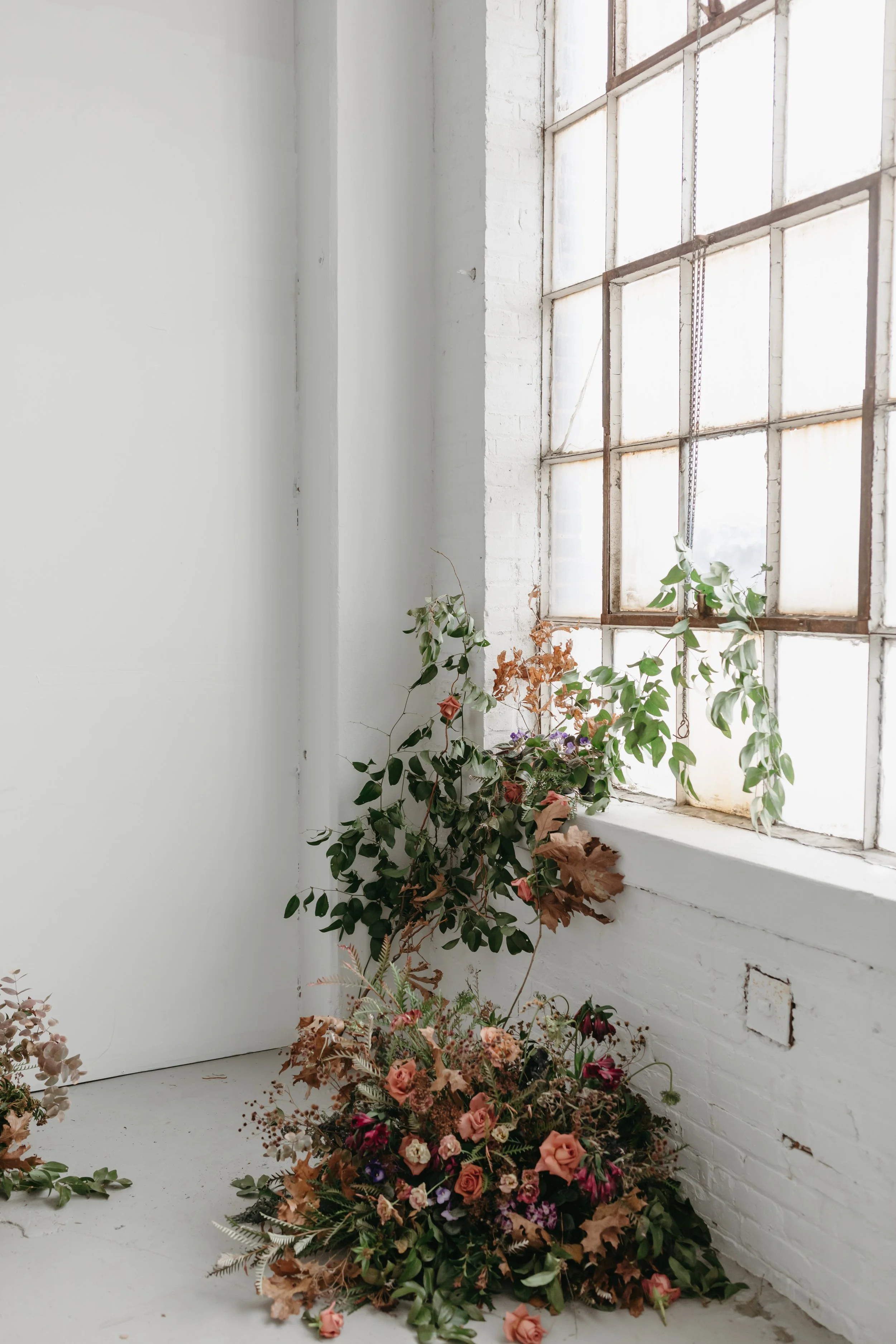 Floral Instillation in Industrial Baltimore Photo Studio - Mary Bell Photography
